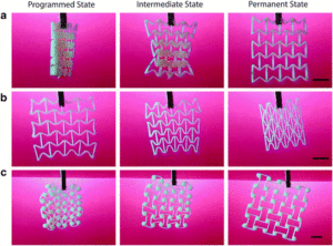 去年11月,蘇黎世聯(lián)邦理工學(xué)院(ETH Zurich)的研究人員發(fā)表了一項(xiàng)研究,解釋了形狀記憶聚合物如何成為制造適應(yīng)性材料的催化劑,這種材料一旦加熱就會(huì)恢復(fù)到原來(lái)的形狀。該研究小組在試驗(yàn)中使用了3D打印、可編程設(shè)計(jì)和熱粘彈性超材料,Kristina Shea教授和她的博士生(Tim)Chen為實(shí)驗(yàn)開(kāi)發(fā)了3D打印形狀記憶聚合物條帶。