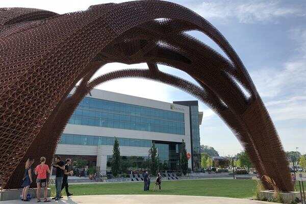 2018年殼與空間結(jié)構(gòu)建筑研討會上周在美國馬薩諸塞州的麻省理工學(xué)院內(nèi)舉行。研討會期間,主辦方推出了一款高約6.1米,寬約12.8米的大型開孔結(jié)構(gòu)3D打印涼亭結(jié)構(gòu)建筑。