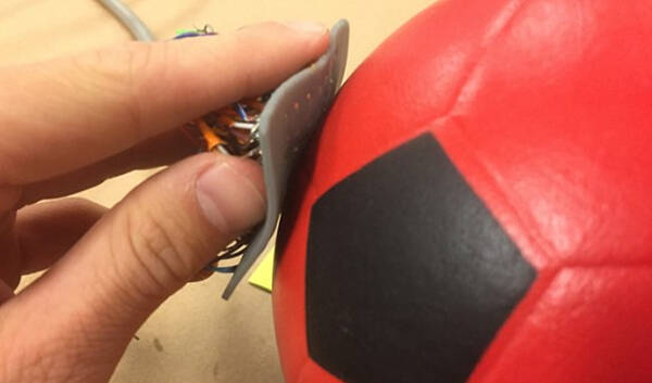 使用足球,Cyr演示了該設(shè)備如何測(cè)試心臟表面