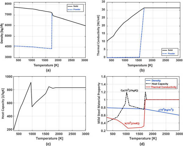c)SS17-4PH的熱容量; (d)低碳鋼的材料特性。