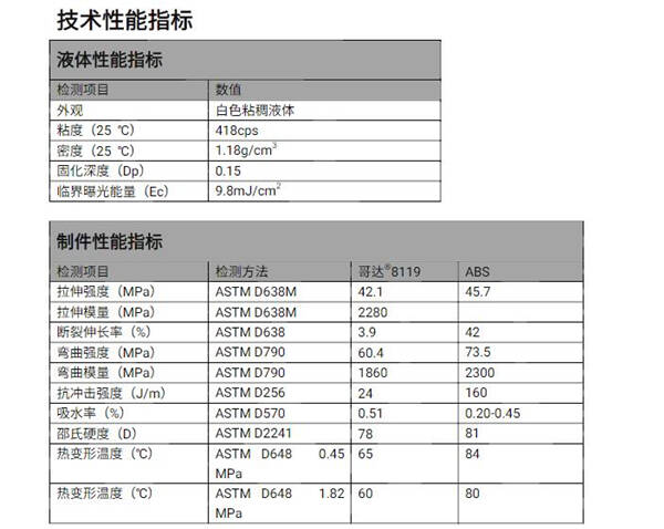 3D打印材料之光敏樹脂物性表