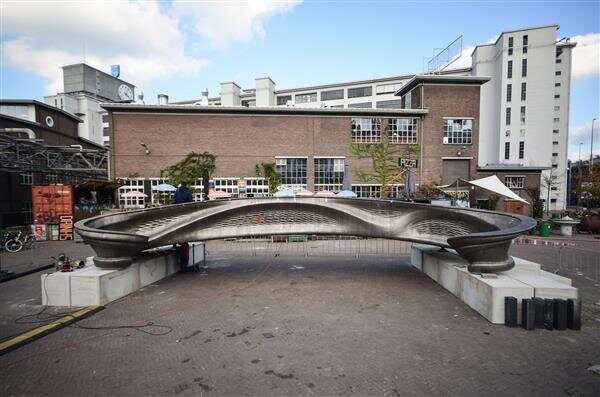 這座橋已于2018年10月20日至10月28日舉行的荷蘭設(shè)計(jì)周期間展出.3D打印鋼鐵橋由荷蘭機(jī)器人公司MX3D,阿蘭圖靈研究所和阿魯普的數(shù)學(xué)家創(chuàng)建。
