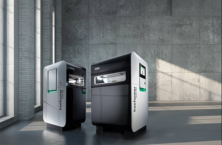 在三個(gè)材料排放單元的幫助下,freeformer 300-3X可以制造多材料和多色部件。它可以生產(chǎn)不同于成品的支撐材料的部件。除此之外,ARBURG的材料噴射系統(tǒng)可以結(jié)合硬質(zhì)和軟質(zhì)材料來生產(chǎn)獨(dú)特的部件。23 x 13 x 20cm的構(gòu)建室由兩部分保護(hù)。這允許操作者打開門的頂部并重新填充進(jìn)料斗而無需打開加熱的床室。該系統(tǒng)使得打印過程更加有效,因?yàn)樵诓迦牖蛉コ考r(shí)僅需要打開加熱的構(gòu)建室。名稱中的“300”是指構(gòu)建室的尺寸,單位為立方cm,比自由形狀200-3X大50%。