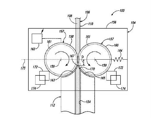 根據(jù)性能要求來設計材料。其基本原理包括,通過輸送機構推動絲材的運動來實現(xiàn)連續(xù)的3D打印過程,其中絲材包括非樹脂組分和光聚合樹脂組分。進給機構包括相對的輥子和與至少一個相對的輥子接觸的刮刀。