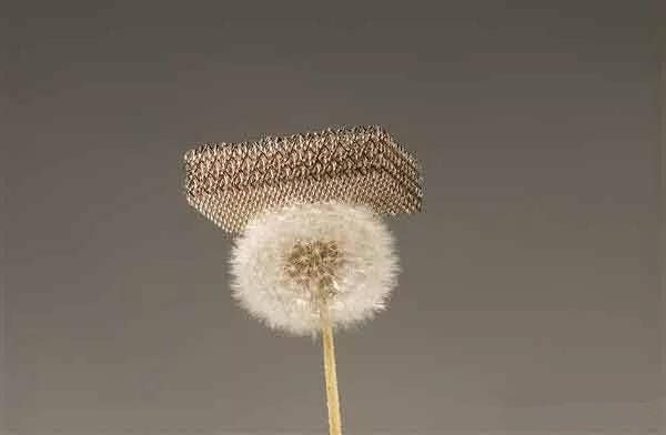 點(diǎn)陣結(jié)構(gòu)可以作為先進(jìn)的阻尼材料。根據(jù)市場(chǎng)研究,波音公司與HRL實(shí)驗(yàn)室共同研發(fā)了一種輕若鴻毛的微點(diǎn)陣阻尼材料,這一技術(shù)展示了獨(dú)特的3D打印微點(diǎn)陣結(jié)構(gòu)材料的巨大潛力。HRL實(shí)驗(yàn)室通過3D打印技術(shù)創(chuàng)造的這一突破性的金屬結(jié)構(gòu),其基本的架構(gòu)是通過紫外光固化聚合物形成的模板。然后使用化學(xué)電鍍的方法為模板鍍上一層超薄的鎳,再除掉熱聚合物模板材料,只留下掏空的金屬結(jié)構(gòu)。該金屬結(jié)構(gòu)的99.99%都是空氣,納米固體結(jié)構(gòu)只占0.01%,掏空管殼厚度僅100納米,比頭發(fā)細(xì)1000倍。通過利用中空管彎曲的能量吸收機(jī)構(gòu)(如微點(diǎn)陣所提供的),HRL實(shí)驗(yàn)室的研究結(jié)果可以提供高阻尼的性能,特別是適用于聲學(xué),振動(dòng)或沖擊領(lǐng)域的阻尼用途。