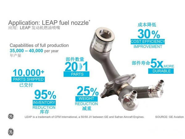和這個(gè)標(biāo)志性事件同樣值得慶祝的是,從這里走出的部件已經(jīng)搭載到了空客A320neo和波音737 MAX飛機(jī)的LEAP引擎上。而該款引擎的總訂單數(shù)量也已經(jīng)超過(guò)1.6萬(wàn)臺(tái),總價(jià)值超過(guò)2,360億美金。除了LEAP,GE航空還利用3D打印技術(shù),為GE9X等引擎制造傳感器、葉片、熱交換器和其他部件。GE9X是世界最大的商用噴氣式引擎,為波音新的777X寬體飛機(jī)開(kāi)發(fā)。