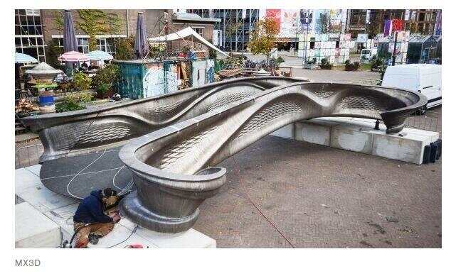 世界上第一座3D打印鋼橋今年在荷蘭設計周上亮相,設計公司MX3D表示,該人行天橋將于明年在阿姆斯特丹安裝。雖然整個項目費時近四年,但該公司表示,天橋的制作生產(chǎn)過程現(xiàn)在可以在六個月內(nèi)完成。