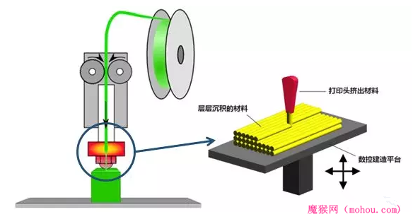 目前陶瓷3D打印成型技術(shù)主要可以分為噴墨打印技術(shù)(IJP)、熔融沉淀技術(shù)(FDM)、分層實(shí)體制造技術(shù)(LOM)、選擇性激光燒結(jié)技術(shù)(SLS) 和立體光固化技術(shù)(SLA)等。 使用這些技術(shù)打印得到的陶瓷坯體經(jīng)過高溫脫脂和燒結(jié)后便可得到陶瓷部件。根據(jù)成型方法和使用原料的不同,每種打印技術(shù)都有自己的優(yōu)缺點(diǎn),發(fā)展程度也有差距。 1熔融沉積造型(FDM) 熔化沉積造型法由美國學(xué)者Scott Crump于1988年研制成功,其以熱塑性絲狀為原料,絲通過可在X-Y方向上移動的液化器熔化后噴頭噴出,根據(jù)所涉及部件的每一層形狀,逐條線、逐個(gè)層的堆積出部件。FDM使用的原材料有聚丙烯、丙烯腈-丁二烯鑄造蠟質(zhì)等。
