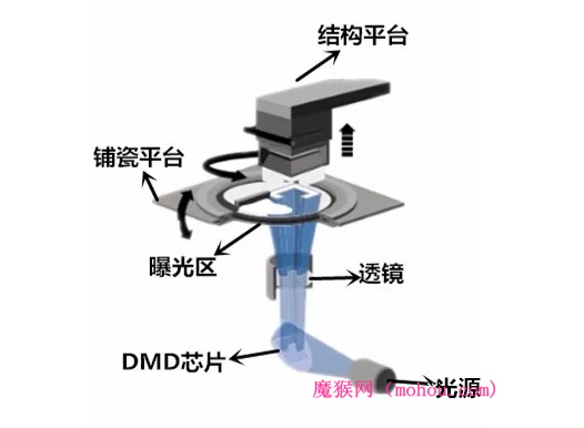 SLS/SLM工藝使用的一般是塑料、蠟、陶瓷、金屬或其復(fù)合物的粉末,其具有無需支撐即可制備復(fù)雜陶瓷部件的優(yōu)點(diǎn),但也存在因受到粘接劑鋪設(shè)比重的限制導(dǎo)致陶瓷制品致比重不高的問題。 6光固化快速成型技術(shù)(SLA) SLA技術(shù)是通過激光的掃描曝光實(shí)現(xiàn)單層的固化。通過紫外激光束,按照設(shè)計(jì)好的原件層截面,聚焦到工作槽中的陶瓷光敏樹脂混合液體,逐點(diǎn)固化,由點(diǎn)及線,由線到面。通過xy方向固化成面后,通過升降臺在z軸方向的移動,層層疊加完成三維打印陶瓷部件。