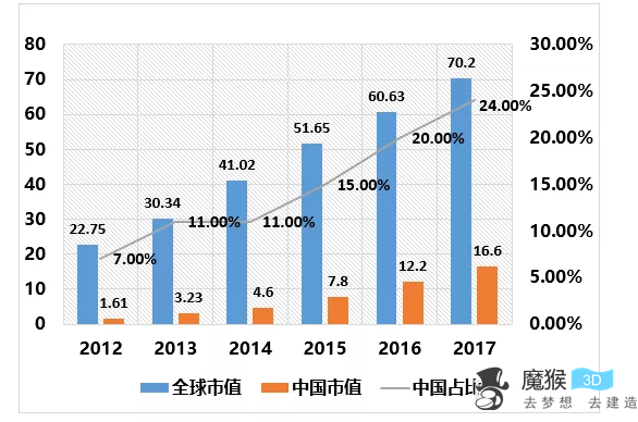 2012-2017全球及中國3D打印產(chǎn)業(yè)規(guī)模
