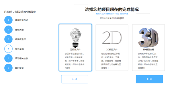 第四步選擇您的項(xiàng)目現(xiàn)在的完成情況/有無(wú)3D文件