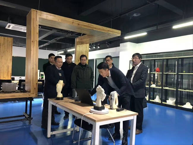 魔猴網(wǎng)董事長(zhǎng)張勇、安徽魔猴負(fù)責(zé)人楊振華陪同介紹下,雙方一起參觀了魔猴的3D打印博物館以及生產(chǎn)車間,并詳細(xì)的了解了展館內(nèi)的各種3D打印生產(chǎn)設(shè)備、3D打印材料、3D打印工藝,特別是結(jié)合工業(yè)設(shè)計(jì)創(chuàng)新應(yīng)用的3D打印模型受到各領(lǐng)導(dǎo)一致好評(píng)。