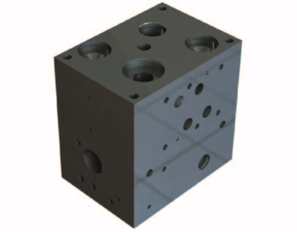 原始液壓歧管。對(duì)流動(dòng)通道進(jìn)行交叉鉆孔并插入堵塞頭,以引導(dǎo)液體的流動(dòng)路線
