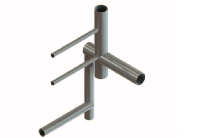 第一步是將部件解構(gòu)成可提供液壓歧管功能的 必要通道。使用CAD(計(jì)算機(jī)輔助設(shè)計(jì))軟件將原 始交叉鉆孔設(shè)計(jì)的流動(dòng)通道提取出來,并去除流動(dòng) 通道不需要的鉆孔區(qū)域,只留下必要的管道網(wǎng)絡(luò)。