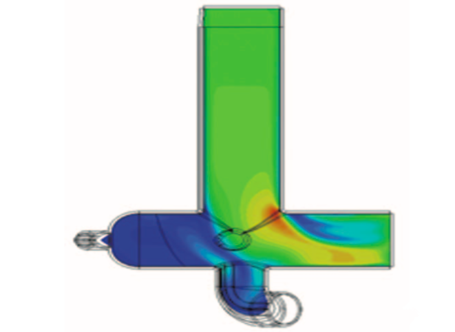 隨后,減少和簡化每個(gè)液壓管路,以便使用 SOLIDWORKS Flow Simulation(流體力學(xué)仿真) 工具進(jìn)行分段計(jì)算流體力學(xué) (CFD) 分析。 接下來,通過CFD分析確定液體流動(dòng)不暢和停 滯的區(qū)域后,對(duì)流動(dòng)通道實(shí)施優(yōu)化。