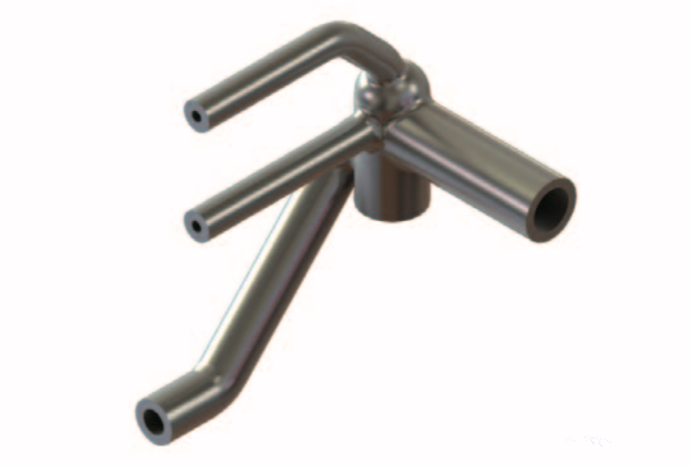 歧管體積的大幅減小為使用更適合的316L不銹 鋼生產(chǎn)迭代2產(chǎn)品創(chuàng)造了條件。二次設(shè)計(jì)迭代后, 歧管凈重減少了37%,即使使用比重較大(不銹鋼 8g/cm3,鋁合金<3g/cm3)的材料也可實(shí)現(xiàn)這一 規(guī)格。