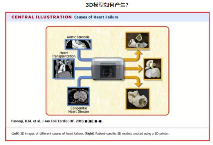 JACC HF子刊一篇《3D Printing and Heart Failure》綜述介紹了目前3D打印技術(shù)在心衰的應(yīng)用進(jìn)展。3D打印技術(shù)用于工業(yè)超過(guò)30年,而在醫(yī)學(xué)上應(yīng)用僅5-10年時(shí)間。最主要用于病人圍術(shù)期特殊的物理模型,心臟通過(guò)MR、CT、心超等顯影技術(shù)進(jìn)行三維重建,然后根據(jù)相應(yīng)的要求在完成復(fù)雜的3D打印。