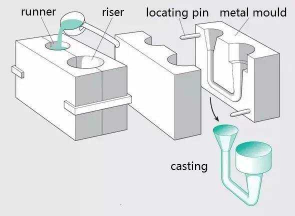 金屬型鑄造:指液態(tài)金屬在重力作用下充填金屬鑄型并在型中冷卻凝固而獲得鑄件的一種成型方法。