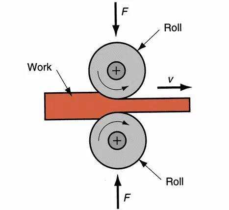 軋制:將金屬坯料通過一對旋轉(zhuǎn)軋輥的間隙(各種形狀),因受軋輥的壓縮成型軋制使材料截面減小,長度增加的壓力加工方法。
