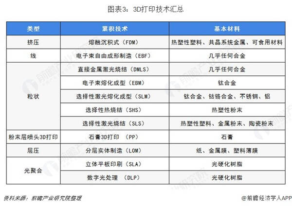 3D打印是集材料、3D打印設備研發(fā)以及下游應用的產(chǎn)業(yè)。上游為3D打印材料研發(fā)制造層,包括輔助運行(三維掃描儀、控制軟件等)、基礎配套(步進電機、芯片等)和打印材料(鈦合金、金屬粉、尼龍材料等)。中游為3D打印設備研發(fā)制造,下游為應用領域,3D打印主要應用場景于航空航天、模具鑄造、生物醫(yī)療、汽車領域等。