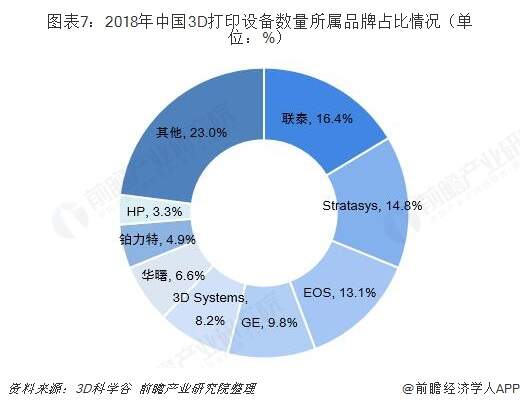 近幾年來,我國3D打印市場呈現(xiàn)出穩(wěn)中向好的態(tài)勢。因此,越來越多的企業(yè)想要分這塊大蛋糕,紛紛進入該領域,目前中國所有3D打印相關企業(yè)中,約有46.9%是2016年以后進入3D打印市場的。當前中國市場的主流設備品牌包括聯(lián)泰、EOS、華曙、鉑力特、3D Systems、GE、Stratasys、惠普等,多為國外品牌。