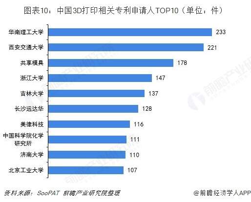 我國3D打印技術與國外相比雖仍有較大差距,但隨著產(chǎn)業(yè)的興起,我國以高校科研機構為主的3D技術研究不斷取得進步。2017年中國3D打印相關專利申請量達到7402件,其中華南理工大學、西安交通大學分別排名第一第二名。技術的進步讓我國3D打印方案不斷落地,2019年1月11日,中國第一座使用3D打印技術制作的高分子材料觀景橋正式亮相。未來,“3D打印+”生態(tài)圈將會越來越完善。