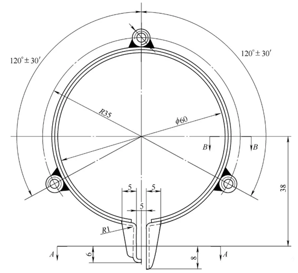 隨著飛機(jī)機(jī)型的升級(jí)換代,某些軍機(jī)會(huì)陸續(xù)停產(chǎn),而在軍機(jī)修理過(guò)程中經(jīng)常會(huì)出現(xiàn)部分零件加工難度大、加工費(fèi)用高、采購(gòu)周期長(zhǎng)或者根本采購(gòu)不到的情況,嚴(yán)重制約了軍機(jī)修理周期。如圖4所示卡箍類(lèi)零件,修理中需求量少,工藝復(fù)雜,傳統(tǒng)加工需要3套模具、工裝等來(lái)保證產(chǎn)品合格,而生產(chǎn)3套模具的成本要遠(yuǎn)遠(yuǎn)高于該產(chǎn)品本身的價(jià)格,因而不適于自制;但采購(gòu)過(guò)程中發(fā)現(xiàn)該零件制造廠(chǎng)已停產(chǎn),無(wú)法采購(gòu)到位,因而該零件成為制約飛機(jī)修理周期的一個(gè)瓶頸。