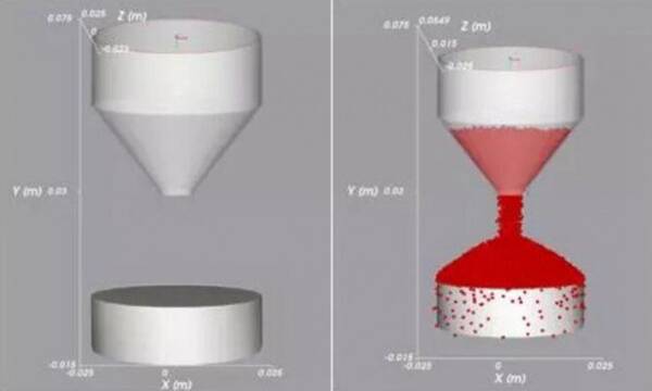 2 安息角測試所用離散元分析模型