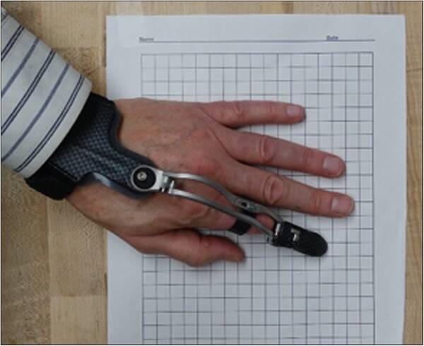 隨著病例研究患者手部的虛弱區(qū)域以及其他未受影響的手(其作為假體模型)被掃描,配件開始遠程制作。 3D打印部件允許通過三個分段部分進行夾緊抓握,其中每個部分之間具有簡單的樞轉(zhuǎn)接頭?!霸撛O備使用定制的軟氯丁橡膠鑄件固定在手掌上,用于創(chuàng)建一個錨定點,用于驅(qū)動設備發(fā)生并減少用戶可能從尼龍繩中受到的摩擦力用于在LFP的指間關節(jié)周圍產(chǎn)生旋轉(zhuǎn)力,在指尖上添加一個硅膠手柄,以增加抓握順從性,并防止抓握物體的滑動。假體的初始尺寸是遠程進行的,并開始指導患者拍攝受影響和未受影響的肢體,包括已知的可測量尺度,例如公制網(wǎng)格紙。