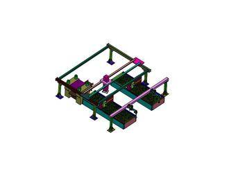 機(jī)械手放置堆疊海綿到吸塑盤產(chǎn)線