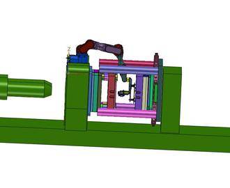 大型塑膠成型注塑機六軸機器人上下料系統(tǒng)